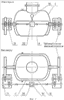 – устройства фиксации концов трубопровода в первоначальном положении при вырезке дефектного участка, состоящего из двух частей, каждая из которых представляет собой трубный узел 22 того же сечения, что и трубопровод, к концам которого приварены несущие металлоконструкции 23 с захватами 24. Каждая часть соединена с корпусом 1 аппарата с помощью шарниров 25, а с трубопроводом – с помощью захватов 24. Между собой захваты 24 соединены штоками (гидравлическими, пневматическими или винтовыми), например штоками гидроцилиндров 26. На трубных узлах 22 установлены люки 27 с механическим (гидравлическим или пневматическим) приводом для впуска – выпуска воздуха и воды, а также выдвижные регулируемые, например гидравлические или пневматические опоры 28;