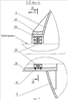 – трассы линий жизнеобеспечения – электропитания (освещение), откачки воды, вентиляции и рукавов высокого давления механических приводов цилиндров и устройства поворота поворотного днища 8. Трасса проходит по отдельному отсеку 13 шахты обслуживания. В отсеке 13 также установлен трубопровод для спуска лота с датчиком наличия воды (не показан). Для вывода рукавов высокого давления из нижней царги 6 наружу используется панель разъемов;