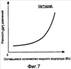 Фиг.7 – график, показывающий взаимосвязь между величиной P изменения давления и оставшимся количеством VL жидкого водорода в баке; и