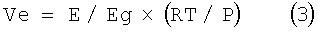 Подобным образом, если приближенно применяется уравнение состояния идеального газа, объем Ve, подвергнутый фазовому превращению в газ, выражается следующим уравнением: