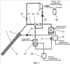 Одновременно другую часть полученного пара с давлением P1 из гелиоприемника 1 через регулировочный вентиль 23 направляют в турбогенератор 24, вырабатывающий электрический ток, который отправляют потребителю и в электрический аккумулятор 26, а “мятый пар” после турбогенератора 24 через обратный клапан 25 (клапан 25 предотвращает обратный ход пара в случае внезапного повышения давления в испарителе 19) с давлением Р4, несколько большим, чем давление в испарителе 19 Р3, смешивается с вторичным паром, после чего паровая смесь поступает в приемную камеру эжектора 16 и происходит вышеописанный цикл работы ТТЭК.