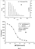 На фиг.1 представлен прецизионный капиллярный дифференциальный титрационный калориметр имеющий эталонную 1 и рабочую 2 калориметрические камеры в виде прямых капиллярных трубок с внутренним диаметром 2.0 мм. Полный объем калориметрической камеры равен 268 мкл, рабочий объем равен 156 мкл. Рабочим объемом калориметрических камер является объем части трубок, расположенный между дном камер и границей контакта с пассивным тепловым шунтом 3. Длина капилляров рабочего объема камер равна 50 мм. Калориметрические камеры заключены в термостатирующую оболочку 4. На выводных концах капилляров калориметрических камер установлен активный тепловой шунт 5, который снижает тепловой шум и исключает теплообмен калориметрических камер и пассивного теплового шунта с внешней средой через выводную часть капиллярных трубок. Калориметрические камеры снабжены измерительной термобатареей 6. Калориметрические камеры, заключенные в термостатирующую оболочку 4, установлены в термохолодильник 7. На термостатирующей оболочке установлен датчик температуры 8, а на активном шунте установлен датчик температуры 9. Датчики температуры 8 и 9 подсоединены к многоканальному измерительному усилителю 10, связанному с компьютером 11, содержащим многоканальный АЦП и модуль PC-TIO-10, связанные с блоком усилителей мощности 12, соединенным с нагревателем 13 термостатирующей оболочки и нагревателем 14 активного шунта. Калориметр снабжен измерителем мощности тепловых процессов, состоящим из термобатареи 6, связанной своим выходом со входом нановольтметра 15, который снабжен интерфейсом RS-232, связывающим нановольтметр с компьютером 11.