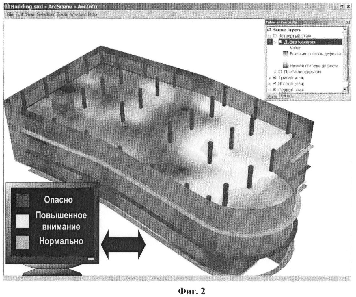 На Фиг.2 изображен частный случай выходного изображения блока градации выходной информации, иллюстрирующего текущее техническое состояние объекта в режиме квазиреального времени.