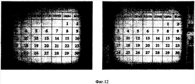 После определения матрицы смещений можно исправлять изображения, полученные этой же оптической системой при таком же фокусном расстоянии. Для иллюстрации на Фиг.12 приведены результаты восстановления описанным методом изображения, полученного с помощью фотоаппарата Canon Power Shot A570. На левом неисправленном снимке видно заметное бочкообразное искажение. Справа – исправленный с помощью рассчитанной матрицы искажений снимок. Нужно отметить, что функция геометрической корректировки изображения и сами матрицы искажений для различных фокусных расстояний могут быть зашиты во внутреннее программное обеспечение фотоаппарата еще на стадии изготовления, при этом получаемые с помощью этой функции изображения будут неискаженными.
