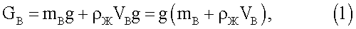 Вес U-образной вставки 1 в трубопроводе с жидкостью: