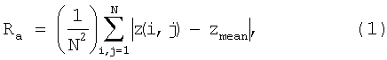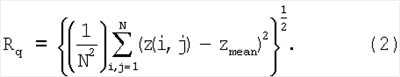 где z(i, j) – значение высоты рельефа в точке с координатами (i, j), измеренное с помощью АСМ, N – количество точек в строке сканирования; – среднее значение высоты рельефа на изображении.