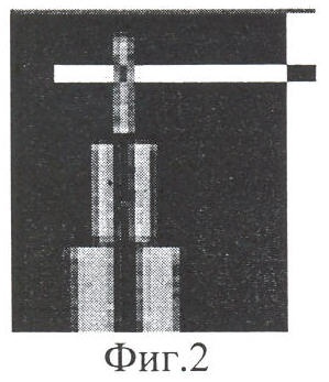 Указанные условия обеспечивают высокую чувствительность системы измерения. При этом для измерения показателя ослабления при формировании светового потока от источника света светлые штрихи тест-объекта 5 могут быть выполнены в виде прорезей, а при использовании естественного освещения – нанесены белой краской на черную поверхность тест-объекта. Видеокамеру 2 размещают от тест-объекта 5 на расстоянии (х), большем, чем фокусное расстояние ее объектива, что позволяет получить действительное изображение тест-объекта.