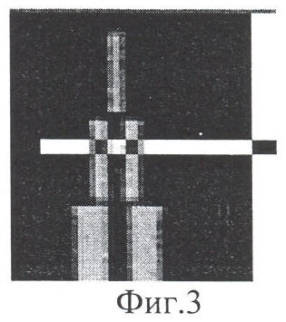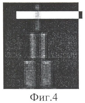 на фиг.3 – оптический сигнал с программным выделением области штрихов со средней пространственной частотой в изображении эталонного объекта, общий вид;