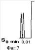 После чего с помощью программного обеспечения формируют для действительного изображения (фиг.2, 3) профиль оптического сигнала на высокой пространственной частоте с фиксацией наибольшего значения сигнала S0 max (фиг.6) и профиль оптического сигнала на средней пространственной частоте с фиксацией наименьшего значения сигнала S0 min между двумя штрихами (фиг.7).