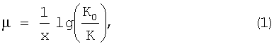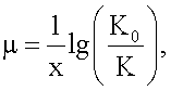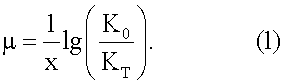 где µ – показатель ослабления объекта; х – линейный размер объекта; К0 – начальный контраст; К – текущий контраст.