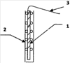 Электрод представляет собой основу из хромоникелевой стали – 1, на которую нанесен слой толщиной 0,025 мм химически стойкого органического полимера БФ-2, в котором распределен мелкодисперсный порошок сульфида меди, кадмия и ТРГ – 2. Конструкция также содержит токоотвод – 3, присоединенный к основе – 1.