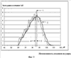 На фиг.3 дано распределение интенсивности откликов ДАЭ при калибровке отдельных калиброванных частиц песка. Кривая 1 – реальное распределение; 2 – сглаженная функция распределения; 3 – положение максимума распределения на шкале интенсивности; 4 – положение средней величины откликов за период калибровки).