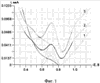 Другим отличительным признаком являются установленные условия электрохимического накопления: потенциал электролиза Еэ=-(0,15÷0,3) В. Опытные данные показали зависимость тока окисления анавидина от Еэ (фиг.3). Величина анодного тока увеличивалась примерно в 2,4 раза и достигала максимального значения в области потенциалов – (0,15÷0,3) В. При Еэ=-(0,15÷0,3) В уменьшалась величина тока восстановления анавидина. Использование предварительного электролиза при значениях потенциала – (0,15÷0,3) В позволяет регистрировать вольтамперограммы с четко выраженным максимумом. Это позволяет повысить точность и селективность способа и экспрессно определять концентрации анавидина меньше, чем 1·10-3 мг/л.