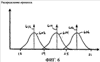 Распределения процесса на фиг. 6 принимают форму кривых нормального распределения, где смежные кривые нормального распределения перекрываются около оси X. Диапазон СВЗП разделен на “элементы разрешения”, границы которых определяются в местах наложения кривых нормального распределения. Элементы разрешения имеют приблизительно одинаковую ширину, в данном описании каждая составляет приблизительно 6 единиц измерения задержки по ширине. Элементы разрешения позже используются в формировании схем распределения частот, а также используются алгоритмом адаптивного отбора по скорости, показанным на фиг. 8.