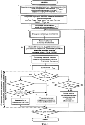 На фиг.1 блока 8 происходит проверка прогнозируемого времени выполнения запроса tПРГН tКРИТ и eERROR eERROR_КРИТ в определенные ранее режимы работы сервера. В случае если условие выполняется, сервер находится в режиме работы “критическая нагрузка”. Тогда происходит переход в блок 10, где проверяется загруженность аппаратной части сервера, после чего принимается решение о режиме работы сервера и возможной реализации угрозы “отказа в обслуживании”.