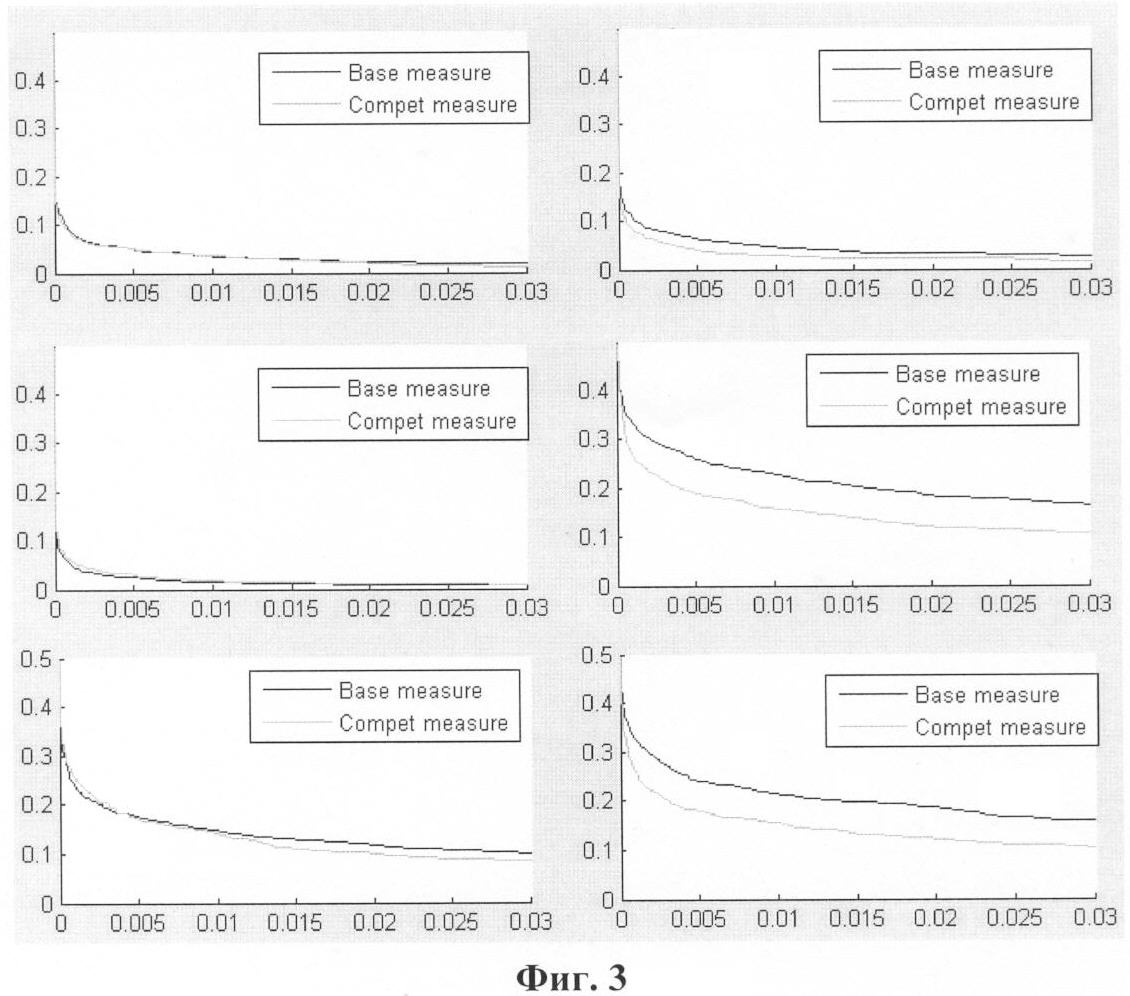 Фиг.3 демонстрирует результаты тестирования в режиме верификации отдельных мер близости.