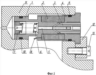 – уплотнительных элементов 9 и 10, установленных в кольцевых канавках корпуса 1.