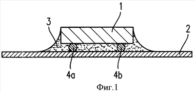 На Фиг.1 показан схематический вид сбоку интегральной цепи 1 и субстрата 2, соединенных вместе адгезивом 3, отверждаемым путем полимеризации в соответствии с настоящим изобретением.