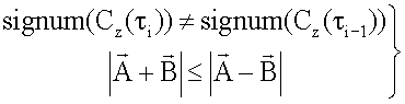Далее выполняют сравнение знака signum(Cz( i)) полученного результата на текущем интервале наблюдения со знаком результата signum(Cz( i-1)) вычислений на предшествующем ( i-1) интервале наблюдения.