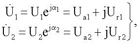 Измеренные комплексные величины напряжений на концах контролируемого участка в момент времени 1=0,01c составили: