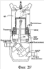 В течение последних двух тактов впуска и сжатия, выполняемых между моментом времени “2” и моментом времени “4” через моменты времени “2.5”, “3” и “3.5” на фиг.3, работа системы 14 электромагнитного питания аналогична описанной выше для первых двух тактов, в которых отталкивающие электромагнитные силы MI1, MI1″, MR1, MR1″, MI1′, MR1′, MI2, MI2″, MR2, MR2″, MI2′, MR2′ и силы МА1′, МА1, МА1″, МА2′, МА2, МА2″ магнитного притяжения, между постоянными магнитами 30, 64 и соответствующими электромагнитами 36, 38, 60, 68 соответственно, заменяются силами MI3, MI3″, MR3, MR3″, MI3′, MR3′, MI4, MI4″, MR4, MR4″, MI4′, MR4′ электромагнитного отталкивания и силами МА3′, МА3, МА3″, МА4′, МА4, МА4″ магнитного притяжения, представленными на фиг.3. Все указанные выше электромагнитные силы индуцируются путем периодической подачи электрических импульсов для подачи энергии на разные электромагниты 36, 38, 60, 68 в течение периода приблизительно несколько миллисекунд (или даже долей этого периода), в то время как постоянные магниты 30, 64 обеспечивают магнитную энергию, доступную благодаря их положению относительно соответствующих, периодически активируемых электромагнитов. Эти магнитные силы притяжения и отталкивания обычно возникают на первом и втором участках соответствующего пути перемещения постоянного магнита 30, 64, как схематично иллюстрируется на фиг.3. Каждый первый и второй участок, очевидно, может включать в себя множество последовательных подучастков в том же цикле перемещения в зависимости от количества магнитов, расположенных вдоль соответствующего пути перемещения.