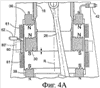 на фиг.4А показан упрощенный вид в разрезе с увеличением варианта выполнения, представленного на фиг.1, представляющий типичную конфигурацию магнитных полей двух неподвижных электромагнитных катушек, предназначенных для взаимодействия с подвижным постоянным магнитом; и
