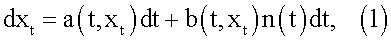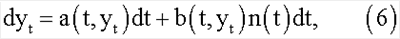 Зададим нормальный марковский процесс стохастическим дифференциальным уравнением первого порядка вида (стохастический дифференциал понимается в смысле Ито) [5]