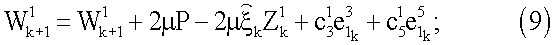 и – отсчет разностных сигналов поступающих в блок 5 вычисления коэффициентов управления адаптивных фильтров из блока 8 и блока 9 соответственно;
