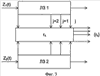 Известно [1], что в схеме, представленной на фиг.1, адаптивный фильтр (АФ) – блок 1, изменяющий свою импульсную характеристику под воздействием выходного сигнала, например по алгоритму наименьших квадратов, отфильтровывает из сигнала на втором входе сумматора 2 все составляющие, коррелированные с сигналом на входе АФ, по критерию минимума среднеквадратической ошибки. В [3] был произведен анализ работы рассматриваемого АФ, из которого следует, что применение адаптивной фильтрации при малом уровне белых шумов на основном и эталонном входе весьма эффективна для ситуации разнесенного приема, когда полезные сигналы в разных ветвях разнесения некоррелированные при сильно коррелированных сосредоточенных помехах.