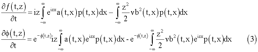 Подставляя найденные выражения функций a(t, yt) и b(t, yt) в (4), получим систему дифференциальных уравнений, которые описывают плотность вероятности процесса y(t) для эксцессного распределения.