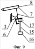 На фиг.1 изображено захватно-срезающее устройство в раскрытом положении; на фиг.2 – то же, вид сверху устройства на фиг.1; на фиг.3 – то же, вид сбоку устройства на фиг.1; на фиг.4 – то же, при захвате обжимным рычагом дерева; на фиг.5 – то же, вид сверху устройства на фиг.5; на фиг.6 – то же, вид сбоку устройства на фиг.4; на фиг.7 – то же, при направленной валке дерева; на фиг.8 – то же, вид сверху устройства на фиг.7; на фиг.9 – то же, вид сбоку устройства на фиг.7.