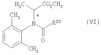 или (С1-С6)-алкил, А6 – СН, R17 – водород, хлор, фенил, однократно замещенный хлором, или циано, R18 – водород или хлор, R19 – водород или гидроксигруппа, группа (7) дитиокарбаматов, выбираемых из ряда, включающего соединения (7-1) манкозеб, (7-2) пропинеб, (7-3) зинеб группа (8) ацилаланинов общей формулы (VI)
