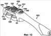 Посредством мембраны 13070 обеспечивают возможность перемещения центральной площадки 13050 по направлению к рамке 13004 при приложении достаточного усилия во время операции чистки. При приложении такого усилия к центральной площадке противоположные половины 13051 и 13053 центральной площадки также изгибаются относительно эластомерного сектора 13055. В результате этого две группы чистящих элементов 13218, выступающих с каждого конца центральной площадки 13050, могут поворачиваться друг к другу. Центральная площадка 13050 может изгибаться в обратном направлении, возвращаясь в ее первоначальное положение при уменьшении усилия, вынуждающего центральную площадку перемещаться по направлению к головке 13002.