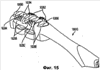 Чистящий элемент 15270 может быть прикреплен к рамке 15004 или может проходить сквозь рамку 15004 от средства для чистки мягких тканей (не изображено), расположенного на противоположной стороне головки 15002. В последнем случае чистящий элемент 15270 может быть сформован одновременно со средством для чистки мягких тканей. В любом случае единая структура, определенная мембраной 15070, несущей площадки 15010, 15020 и сегменты 15051-15058 центральной площадки 15050, могут быть собраны на основании 15004 поверх чистящего элемента 15270. Единая структура может образовывать петлю, которая охватывает пару фиксированных площадок и которая прикреплена к противоположным сторонам центральной площадки. Предусмотрены и другие способы конструирования.