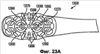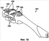 С помощью шарнирного элемента 13080 обеспечивают возможность поворота ближней и отдаленной частей 13082 и 13084 рамки 13004 соответственно относительно друг друга во время использования. Таким образом, головку 13010 можно, в общем, изгибать вокруг поверхности, подлежащей чистке, например вокруг зуба пользователя, как это изображено на Фиг.22B. Кроме того, благодаря наличию шарнирного элемента 13080 можно просто улучшить общую гибкость головки для приспособления ее к ряду разнообразных факторов: к условиям чистки, направлениям использования и прикладываемым усилиям. Например, как изображено на Фиг.22B, благодаря наличию шарнирного элемента 13080 можно обеспечить возможность изгиба рамки 13007 дугой. В другом примере (не изображен) посредством шарнирного элемента 13080 можно обеспечить возможность отгибания назад заостренной части головки, в результате чего можно способствовать перемещению центральной площадки 13050 от рамки, когда мостиковые опоры туго натянуты.