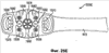 Можно использовать любые соответствующие формы чистящих элементов, таких как чистящие элементы 618 и 626, в широком практическом применении настоящего изобретения. Термин «чистящие элементы», при использовании в настоящей заявке, следует толковать в широком смысле, как сказано выше. Использование различных чистящих материалов в качестве чистящих элементов зубных щеток может привести к различным результатам. При попытке обеспечения лучшего удаления пятен можно использовать резиноподобный материал или эластомер в сочетании с обычными щетинками или использовать только этот материал для «осветления/отбеливания» зубов.