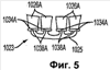 Центральные площадки 12032 и 12034, в общем, обладают большей степенью свободы, чем ближняя и отдаленная площадки. В одной конфигурации мостиковые опоры 12060 и 12070 являются по существу жесткими. Даже при этом с помощью подвесной конструкции можно обеспечить умеренную величину гибкости центральных площадок. В предпочтительной, более гибкой конфигурации, мостиковые опоры 12060 и 12070 являются гибкими элементами, благодаря чему обеспечивают значительно больший диапазон перемещения чистящих элементов, выступающих из центральных площадок 12032 и 12034, чем у чистящих элементов, выступающих из ближней и отдаленной площадок 12010 и 12020 соответственно, которые, в общем, являются статичными или неподвижными. Гибкие мостиковые опоры могут быть сформованы из упругого материала, например термопластичного эластомера. Можно также использовать и другие резиноподобные материалы, например, другие термопластики, или термопластичный уретан, или пластомер, или любое их сочетание.