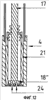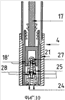 Шток 5 (фиг.3 и 5) подвижной губки 4 выполнен полым и внутри него расположен шток 17 средства фиксации игл, несущий на своем дистальном конце прижимной элемент 18, а на проксимальном конце – рукоятку 19 управления средством фиксации игл. Шток 17 средства фиксации состоит из двух частей, связанных друг с другом шарнирным соединением 20. Верхняя часть штока 17 снабжена винтовой резьбой, которой соответствует внутренняя винтовая резьба, выполненная на стенке канала в штоке 5 губки. Эта винтовая резьба противоположна по ходу винтовой резьбе, расположенной на наружной поверхности штока 5 губки. Благодаря винтовой резьбе на верхней части штока 17 последний способен вращаться и передвигаться внутри штока 5 губки. Нижняя часть штока 17, несущая прижимной элемент 18 средства фиксации игл, не вращается, но способна передвигаться поступательно в полости штока 5 губки благодаря шарнирному соединению 20.