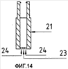 На фиг.13 представлен корпус приемника 21 игл, вид сбоку, а на фиг.14 – поперечный разрез корпуса приемника 21.