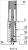 На фиг.15 представлено дно приемника 21 игл с щелевыми отверстиями 24 для игл 9 и перемычкой 23 между ними.
