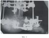 Фиг.3 – рентгенограмма левой стопы больного К. в ходе замещения дефекта пяточной кости после предварительного артродеза таранно-ладьевидного и голеностопного суставов;