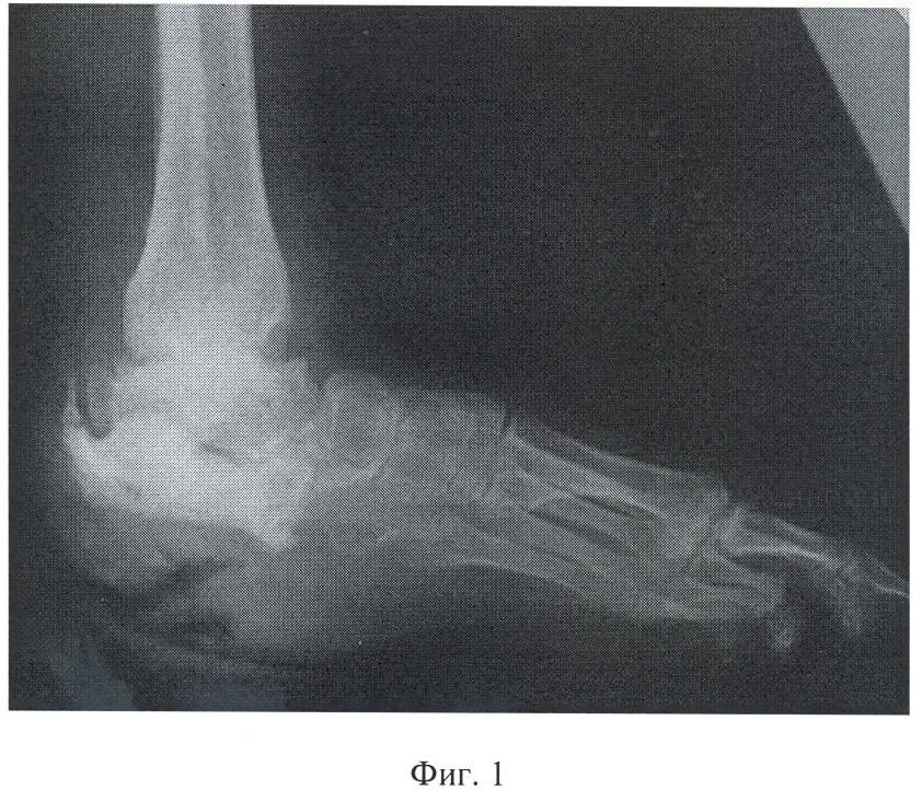 Фиг.1 – рентгенограмма левой стопы больного К. до лечения;