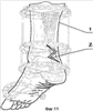 на фиг.2 – разрыв ахиллова сухожилия, стопа находится в положении подошвенного сгибания, диастаз концов сухожилия не устранен;