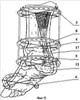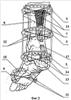 на фиг.3 – компоновка аппарата внешней фиксации со стопой в положении подошвенного сгибания с неустраненным диастазом;