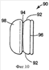Фиг.10 иллюстрирует вариант осуществления наушника 90, в котором часть боковой стенки 92 канала 94 проходит от центра канала 94 к проксимальной поверхности 96 из чаши 98 для уха.