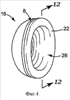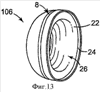Фиг.13 иллюстрирует вариант осуществления чаши 106 для уха, в котором фланец 24 проходит от проксимальной внешней поверхности 22 чаши 16 для уха. При использовании прокладка 18 (не показана), прикрепленная к чаше 106 для уха, посажена вплотную к части проксимальной внешней поверхности 22 и удерживается с возможностью освобождения в положении на чаше 106 для уха за счет трения с фланцем 24.