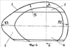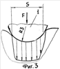 Изобретение поясняется чертежами, где для способа представлены схемы воздействия массажного инструмента от одинаковой во всех случаях силы (F) на поверхность тканей и с соответствующими эпюрами удельных давлений (напряжений), где длина стрелок эпюры соответствует величине удельного давления по пятну касания (S) для каждого радиуса: на фиг.1 – для максимального радиуса кривизны R1, на фиг.2 – для среднего радиуса кривизны R2 (тупой конец овоида), на фиг.3 – для малого радиуса кривизны R3 (острый конец овоида), фиг.4 – фронтальный вид овоида, фиг.5 – разрез овоида по А-А.