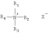 где R1, R2 и R3 являются одинаковыми или различными и каждый означает алкил или арил; или R1 и R2 вместе с атомом азота, к которому они присоединены, образуют 5- или 6-членное насыщенное гетероциклическое кольцо, и R3 означает алкил или арил; или R1, R2 и R3 вместе с атомом азота, к которому они присоединены, образуют 5- или 6-членное гетероциклическое кольцо, ненасыщенное у атома азота, R4 означает алкил или арил, и X– означает анион.