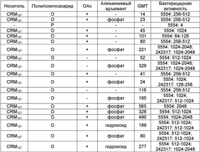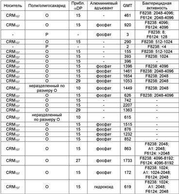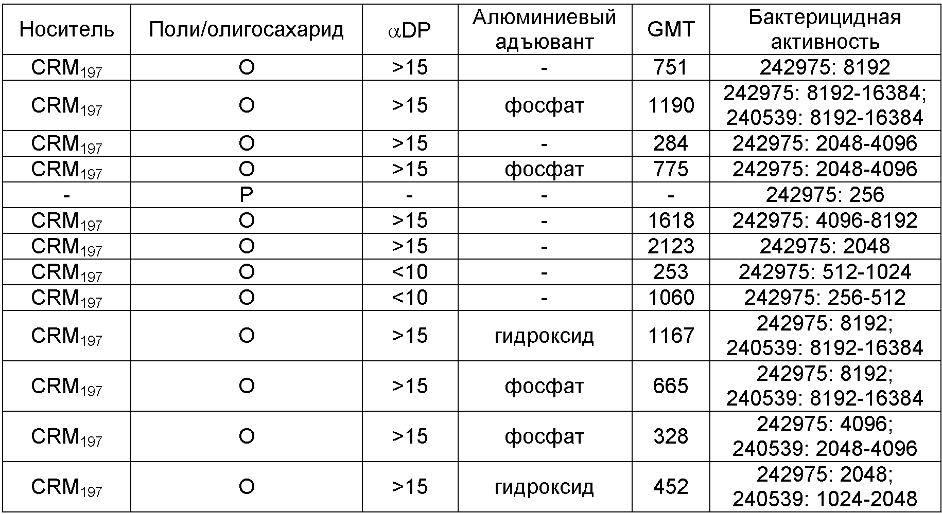 Предпочтительными белками-носителями являются бактериальные токсины или анатоксины, такие как дифтерийный или столбнячный анатоксины. Дифтерийный анатоксин CRM197 [25, 26, 27] является особенно предпочтительным. Другие подходящие белки-носители включают белок внешней оболочки N.meningitidis [28], синтетические пептиды [29, 30], белки теплового шока [31, 32], коклюшные белки [33, 34], цитокины [35], лимфокины [35], гормоны [35], факторы роста [35], искусственные белки, включающие множественные человеческие CD4+ Т-клеточные эпитопы из различных полученных из патогенов антигенов [36], белок D из H.influenzae [37], токсин А или В из C.difficile [38] и т.п. Возможно использование смесей белков-носителей.