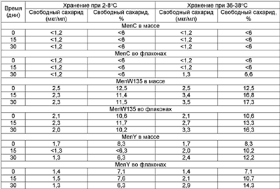 В случае, когда смесь включает капсулярные сахариды из обеих серогрупп А и С, предпочтительно, чтобы соотношение (масс./масс.) сахарид MenA:сахарид MenС было более 1 (например, 2:1, 3:1, 4:1, 5:1, 10:1 или более). Неожиданно было установлено, что компонент MenA обладает улучшенной иммуногенностью, когда он имеется в избытке (масса/доза) по сравнению с компонентом MenС.